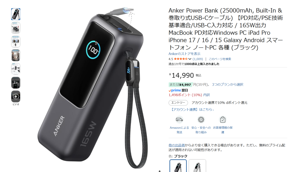 Anker Power Bank(25000mAh巻取り式USB-Cケーブル)を見る