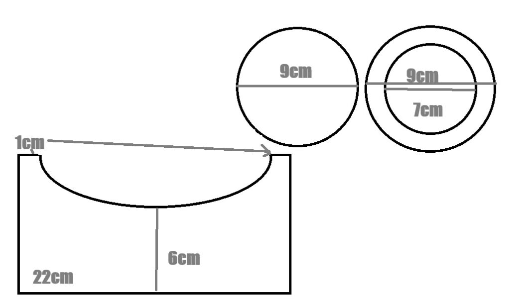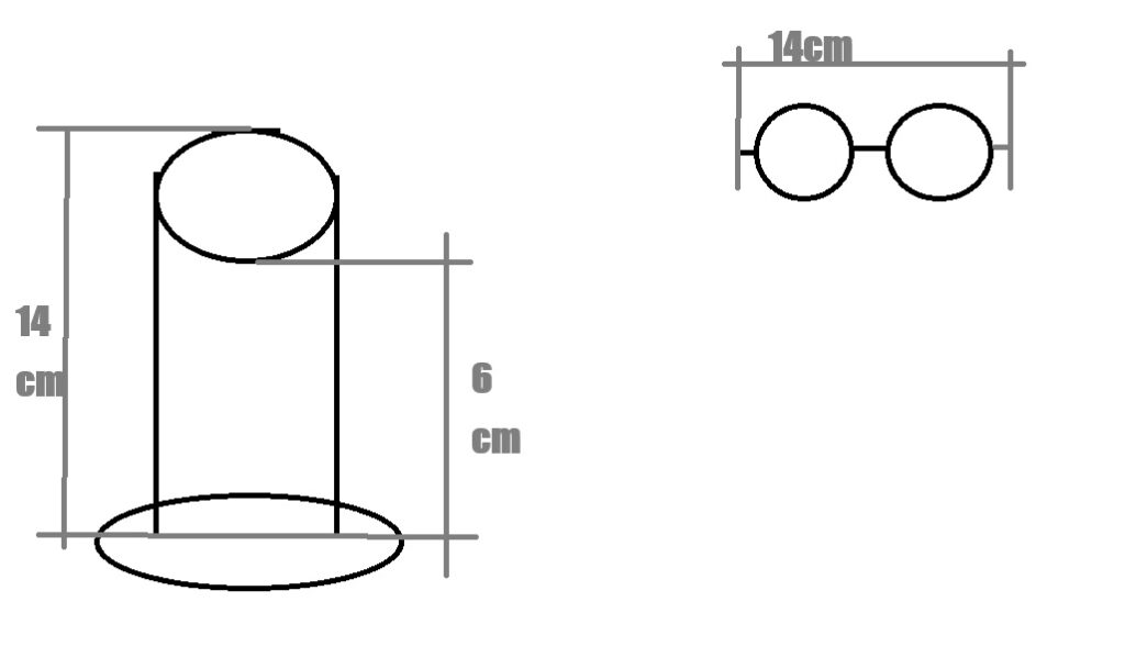 右上の眼鏡の直径を図り、それがすっぽり入るサイズがいいと考え直径は決定。